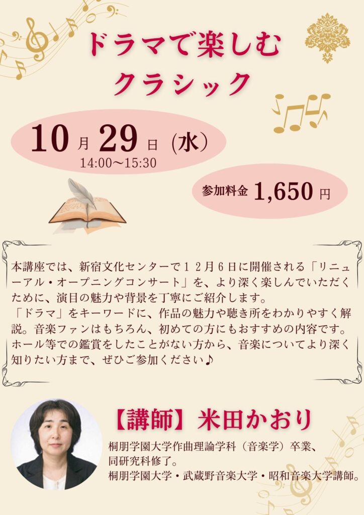 10月29日(水)に、「ドラマで楽しむクラシック」を開催いたします!