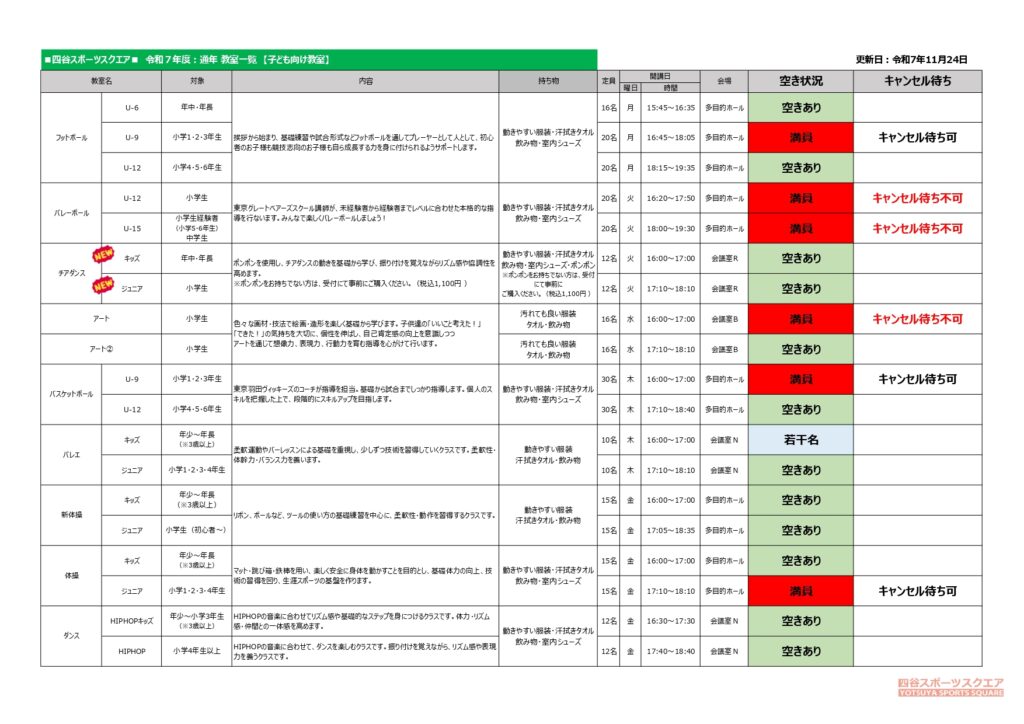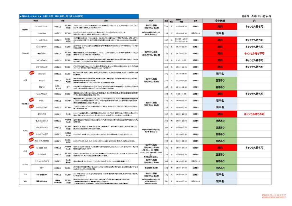 現在(令和7年11月24日)の空き状況をお知らせいたします。