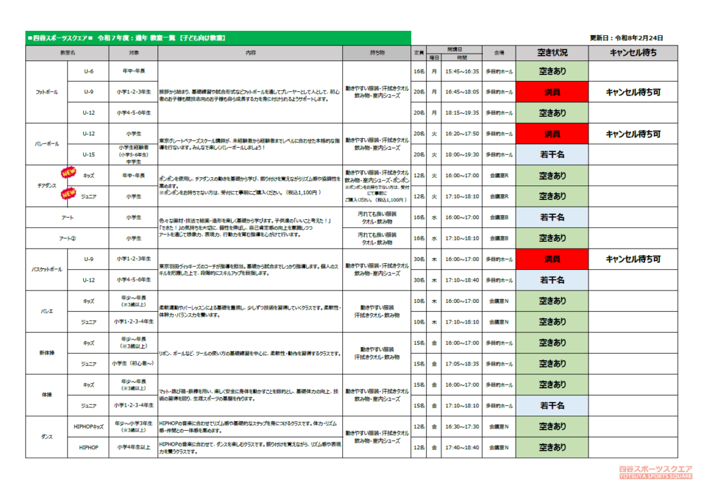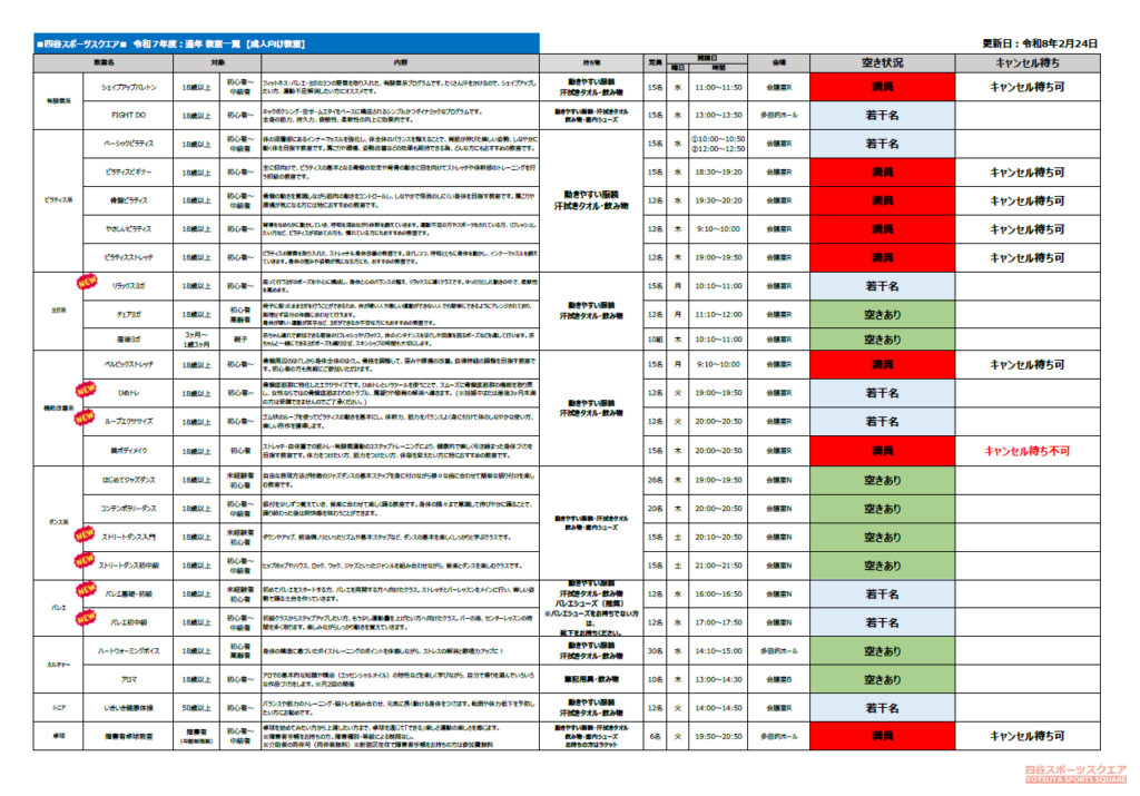現在(令和8年2月24日)の空き状況をお知らせいたします。